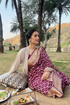 Immerse yourself in the rich allure of the 'Aditri' saree, a hand-dyed magenta marvel crafted in authentic Khaddi Georgette fabric.