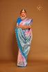 Pastel Pink Satin Silk with Contrast Blue Border Banarasi Saree