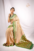 Beige Satin Silk with Contrast Green Border Jaal Banarasi Saree