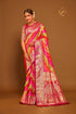 Dive into this Sangam saree - a sea of vibrant colors from the Rangrez collection. Pink, orange and pista come together, singing tales of ancient royalty.