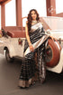 'Jasmine' Black Affair Satin Level-Striped Banarasi Saree
