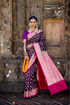 Purple Satin Silk with Rani Pink Border Banarasi Saree